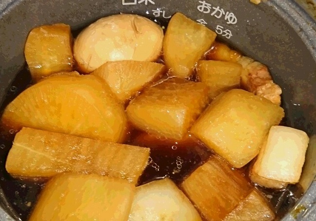 後、今日は炊飯器で角煮を作ってみました。